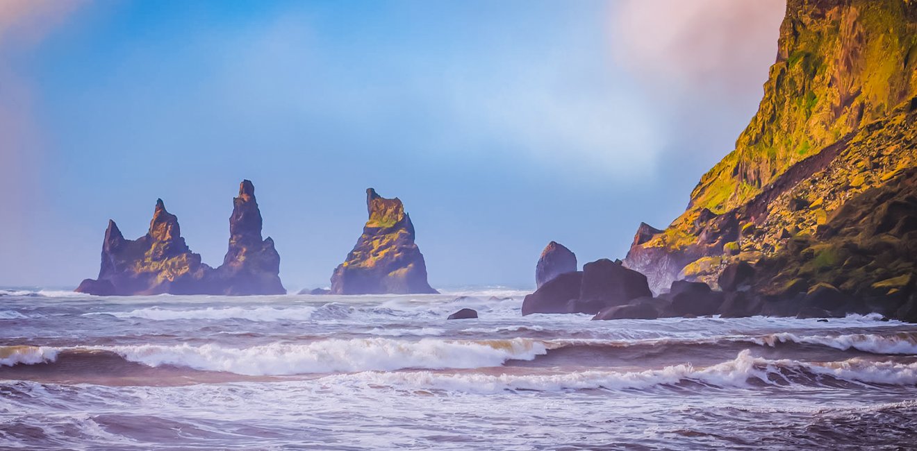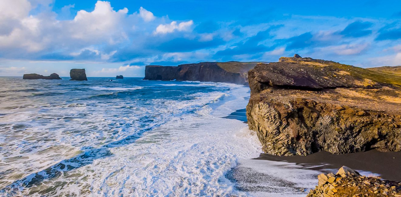 • Visit the world-renowned Reynisfjara Black Sand Beach and admire its sea stacks.